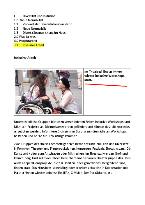 Das Thealozzi will daran mitarbeiten, menschliche Vielfalt in unseren Leben normal werden zu lassen. Dazu gehört es auch, für uns als Kulturstätte Veränderungsprozesse einzuführen und zu durchlaufen, um sie auch bei uns zu verstetigen. Wir gehen es weiter an.