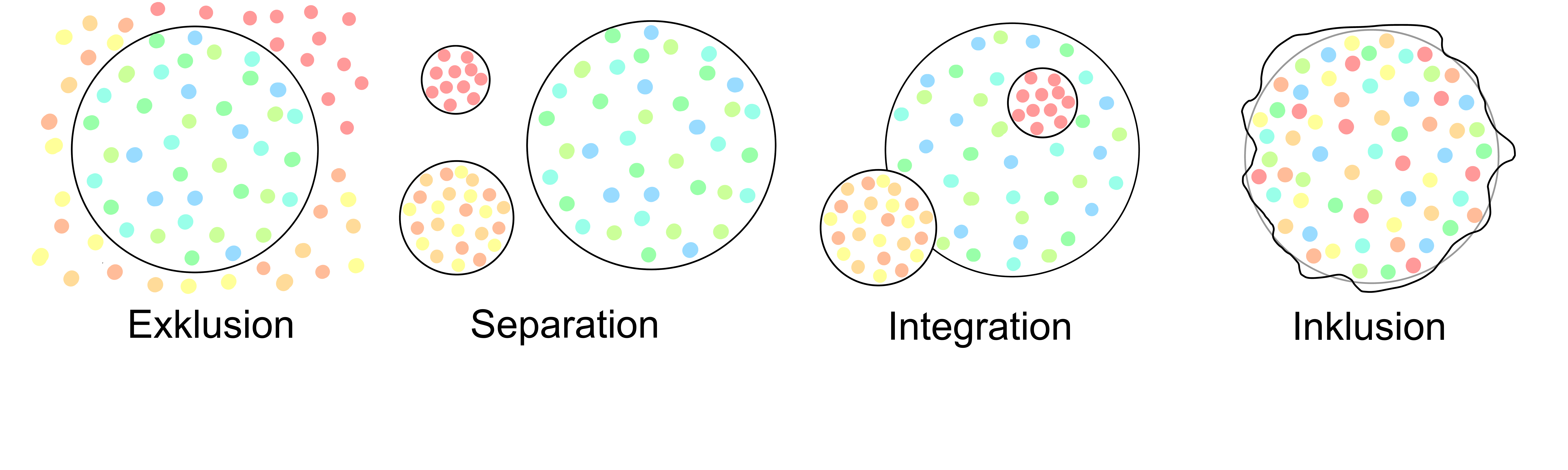 Die Kategorien Exklusion, Separation, Integration und Inklusion sind Gesellschaftsmodelle, die aufzeigen, wie Gesellschaften mit Vielfalt umgehen.